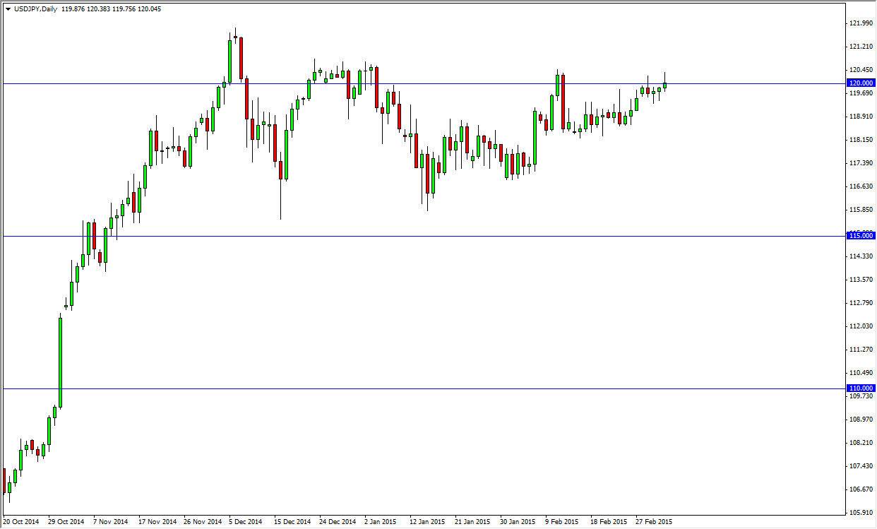 The USD/JPY pair took out to the upside during the session on Thursday, but as you can see struggled above the 120 handle. That’s not surprising, as this pair tends to be very sensitive to the nonfarm payroll announcement out of the United States, which of course comes out today. With that, it’s difficult to imagine that too many people would have wanted to put large amounts of money into this market. Ultimately, this is a pair that tends to be very volatile during nonfarm payroll Fridays, so it’s likely that we will get quite a bit of motion.
