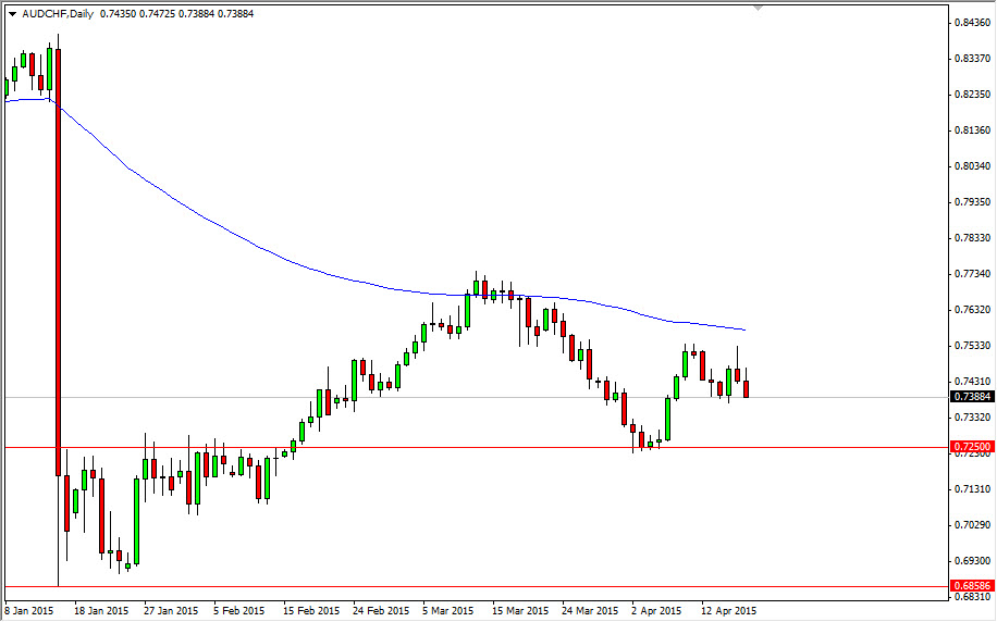 We have essentially made a lower high recently, and as a result I’m going to continue to sell rallies. I believe that short-term charts might be the way to go, because there is only a couple of hundred pips worth of space before we hit a significant support barrier. On top of that, I believe that we will ultimately break down below the 0.7250 level, and when we do it should be a rather significant and its importance and see money floods back into the market to the downside. I think it is not until we get above the 0.76 level that I could consider buying, which is probably something that I will not be seeing anytime soon.