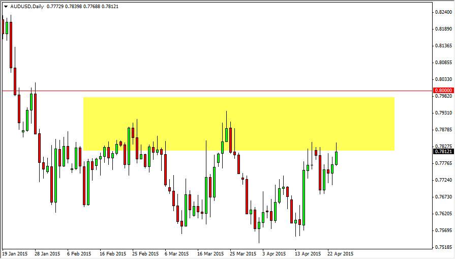 I believe that sideways will be the longer-term move in this pair, essentially making it a short-term traders market. That’s okay though, because I believe that the 0.7550 level will offer plenty of support, while the 0.79 level should be massively resistive. Since we are getting close to that area, I am looking for some type of resistant candle in order to start selling again. Again though, I believe that the resistance extends all the way to the 0.8080, so therefore I find it very difficult to imagine buying this pair anytime soon.