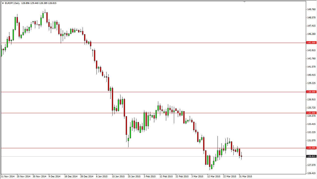 The EUR/JPY pair went back and forth during the course of the day on Wednesday, as the 129 level offered a bit of resistance. It seems as if the resistance runs all the way to at least the 131 handle, so at this point in time I have absolutely no interest in buying this market. Rallies should continue to offer selling opportunities in what is obviously a very bearish market. I think that a break below the bottom of the range for the session on Wednesday is also a selling opportunity, as we should then head to the 127 level rather quickly. I also believe that we go below there, probably heading for the 125 area next.