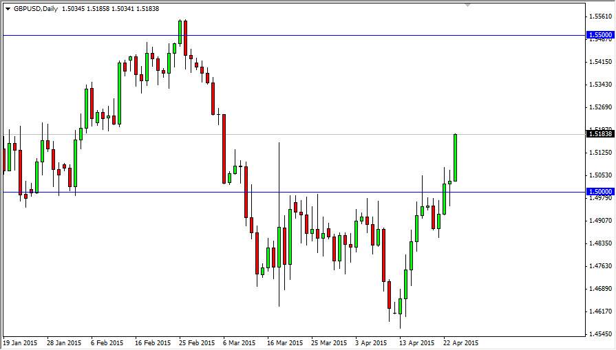 The GBP/USD pair broke much higher during the course of the session on Friday, clearing the top of the hammer that had formed on Thursday. More importantly, and broke above the top of the spike that had formed in the middle of March. In other words, we are breaking through the very last vestiges of resistance. With this, I believe that we can get above the 1.52 level, and that should send this market looking for the 1.55 handle. I think that area is going to be massively resistive, but I do believe that it’s only a matter of time before we have to test it.