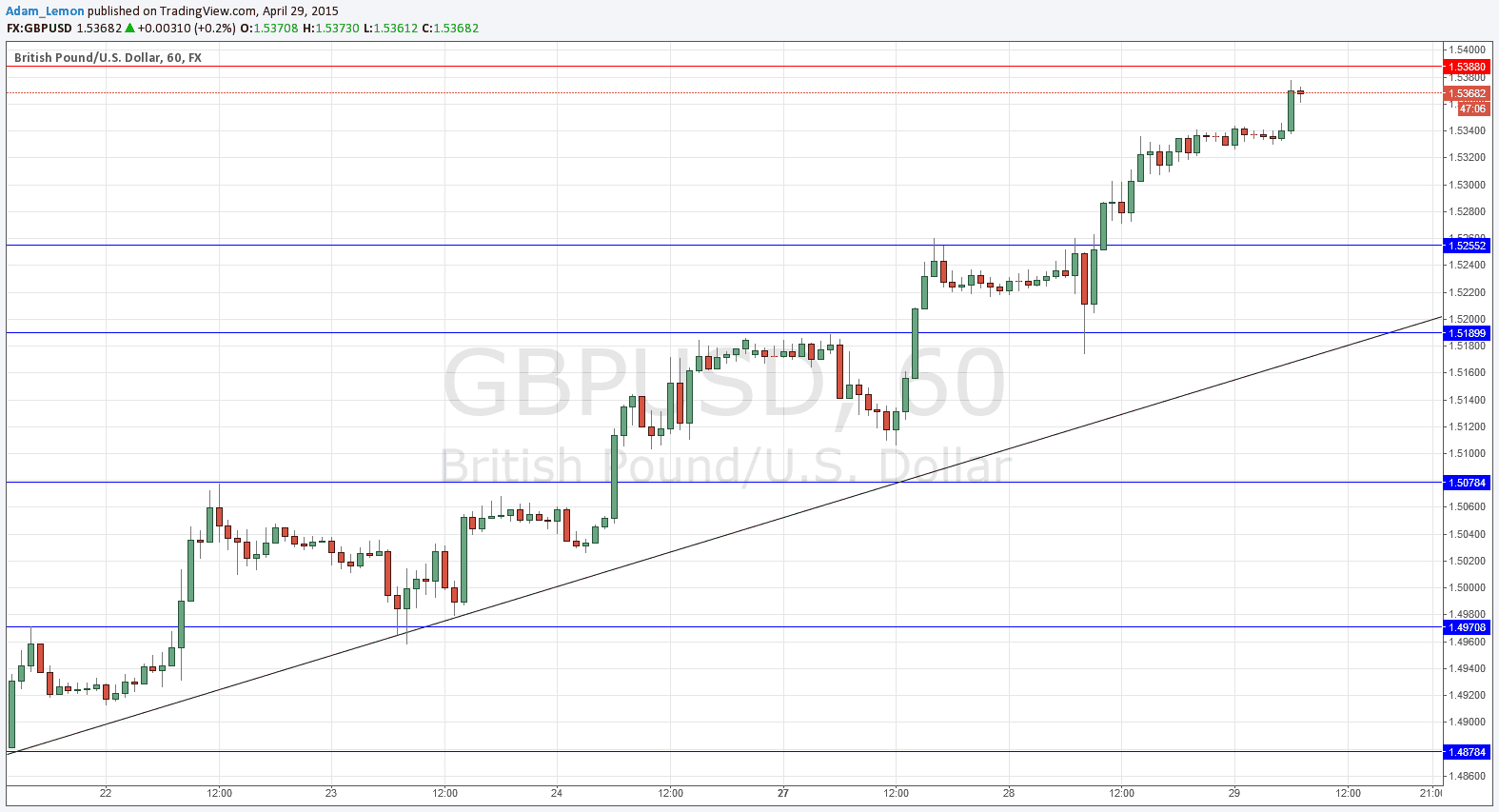 The price then easily broke past 1.5300 and is currently approaching another key resistance level.
