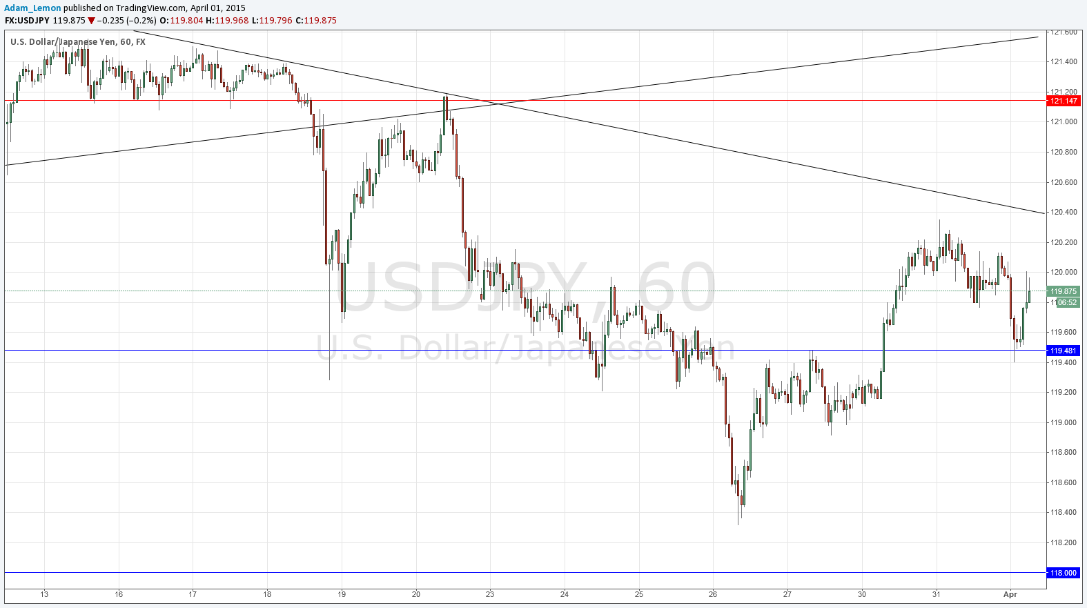 There is a medium-term trend line that has had a few touches not very far above at 120.39. If we reach that level it would be a good time to take more profit if you have an open long if the price begins to look as if it will reverse bearishly. Of course this could also be an opportunity for a short trade.
