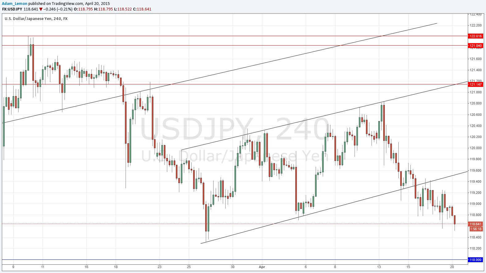 Last Thursday’s signals were not triggered as the price never reached either 121.14 or 118.00.