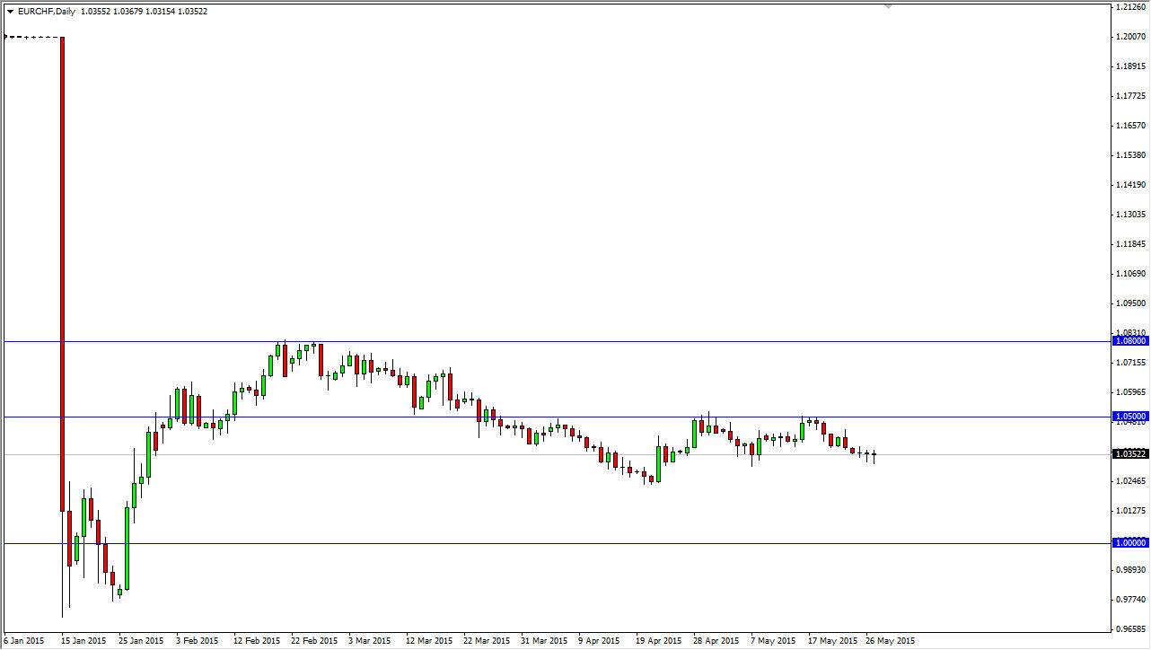 The EUR/CHF pair has been a pair that could quite frankly put you to sleep if you didn't know what you are looking at. After all, it is a pair that has a fairly tight range most of the time, but that is a quick way to make money if you pay attention. The fact that we formed a hammer on Wednesday is interesting to me. What's even more interesting is that we formed one on Tuesday as well. I believe that we have a significant amount of support at the 1.03 level at the moment, and that if we can break above the top of the hammer from the Tuesday and Wednesday sessions, I don’t really see why this market can go to the 1.05 handle. In fact, I am more than willing to take the trade and believe that taking profit just below the 1.05 level is essentially the closest thing to a “no-brainer” trade that you will find in the Forex markets.