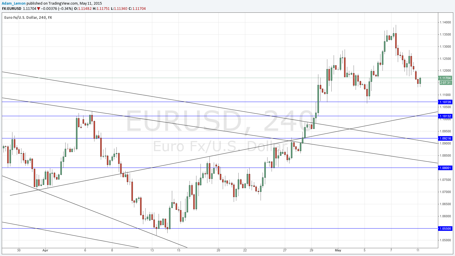 There has finally been something of a pause in the strong bullish momentum. However the chart below shows we are still continuing with a rhythm of higher highs and lower lows which cannot be broken until the price breaks down below 1.1072, where we should expect support.