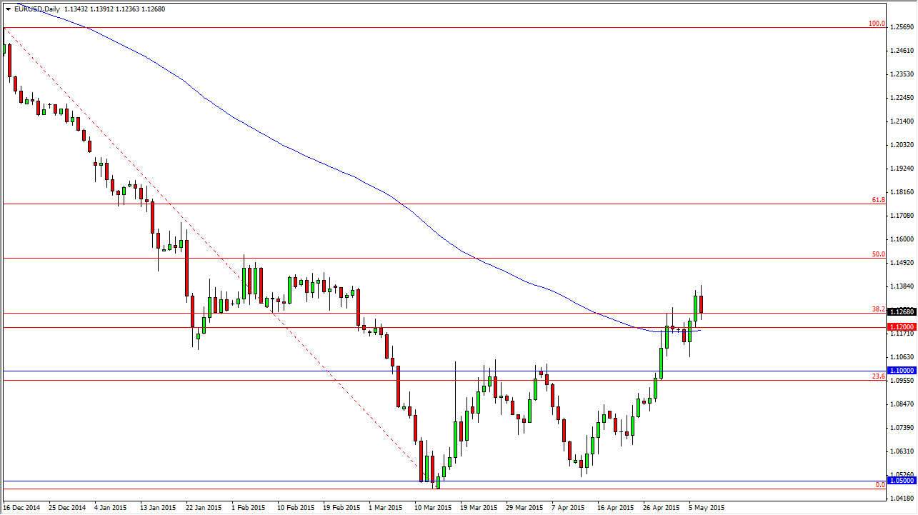 The EUR/USD fell during the session on Thursday, as we get ready for the Nonfarm Payroll numbers out of the United States today. Because of this, I believe that there will be a lot of volatility in this marketplace, but do not be surprised if we end up relatively unchanged. That seems to be the way this market reacts to that number, simply jumping around and deciding nothing. However, looking at the charts I recognize that the 100 day exponential moving average below should be dynamic support now, especially considering that the 1.12 level is right there as well. Ultimately, I believe that we will continue to bang around between the 1.12 and the 1.15 levels, but do recognize that we could go as low as the 1.10 level and still find plenty of support. In other words, I think that this is essentially going to be a “buy only” type of event.