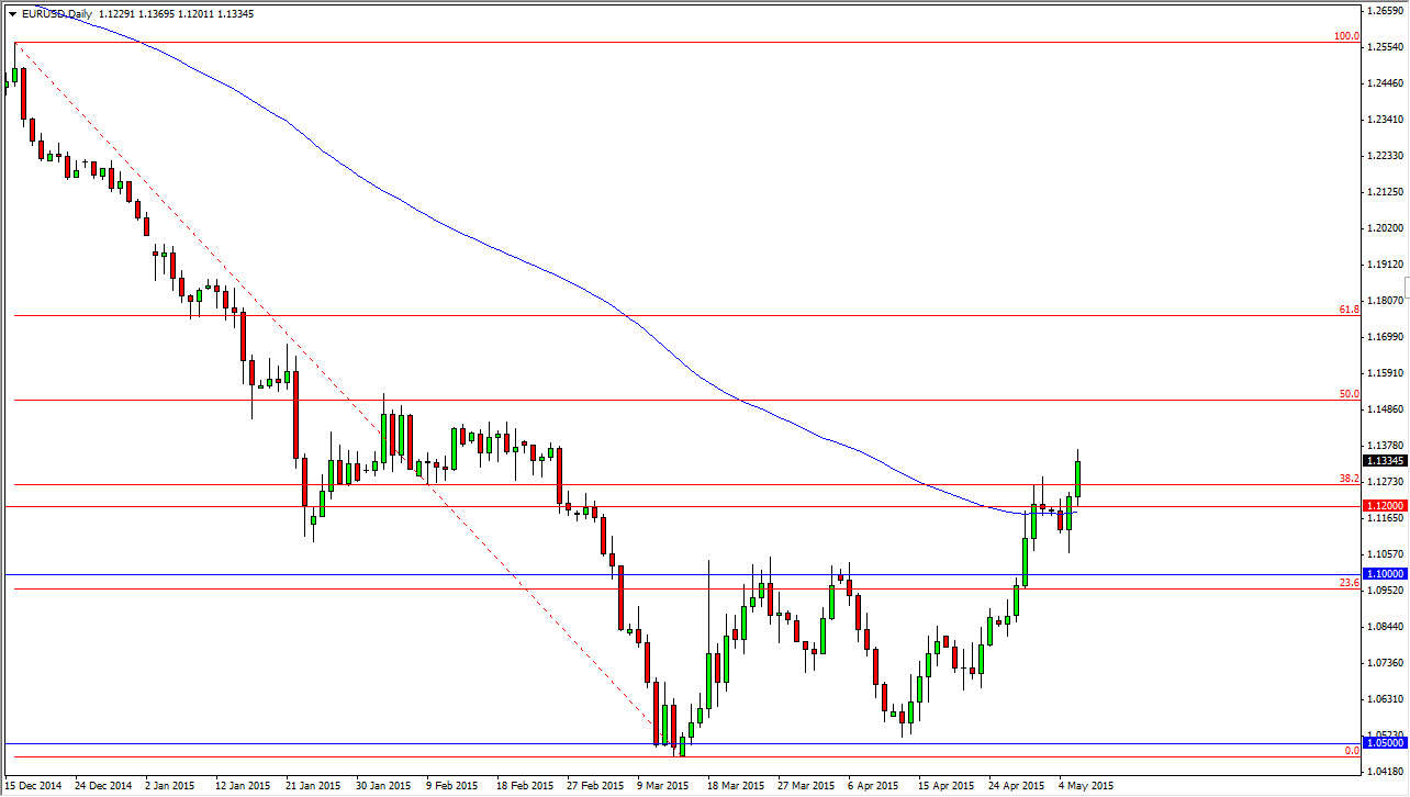 The EUR/USD pair had a very strong showing on Wednesday, as it now appears that it’s only a matter time before we break out and above the 1.15 handle. With that being the case, I think that short-term traders will continue to buy this pair based upon pullbacks that offers supportive candles. The 1.12 level which was once resistance should now be supportive, it appears that a collision with the 1.15 level is imminent. Not only is that a large, round, psychologically significant number, but it is also the 50% Fibonacci retracement level from the selloff that began in late 2014. Adding more credence to this area is the fact that there is a cluster of trading between here and there. In other words, I believe that the trend in this pair will definitely be bullish if we can get above that level. It’s that important.