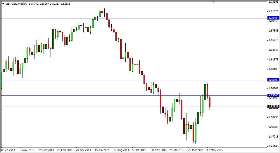 The GBP/USD pair broke down during the course of the week, and now looks as if it’s heading to the 1.50 level. With this, the market is one that you can only sell, and I think that short-term rallies will be selling opportunities. On the other hand, if we got above the 1.55 level, we would be more than likely trying to head towards the 1.58 handle. With this, the market looks soft, but certainly will be volatile in my opinion going forward.