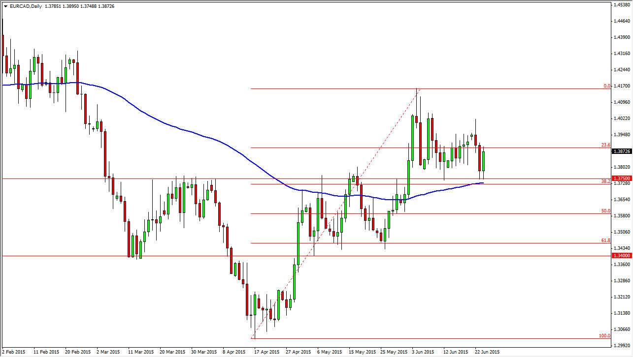 Several days ago, I had an analysis that suggested the 1.3750 region was going to be important in the EUR/CAD pair. Since then, we rallied from that level and then came back to test it again on Tuesday. Wednesday morning saw this market drift a little bit lower, and then bounce significantly. I am more convinced now in the validity of the support that I was just a couple of weeks ago.