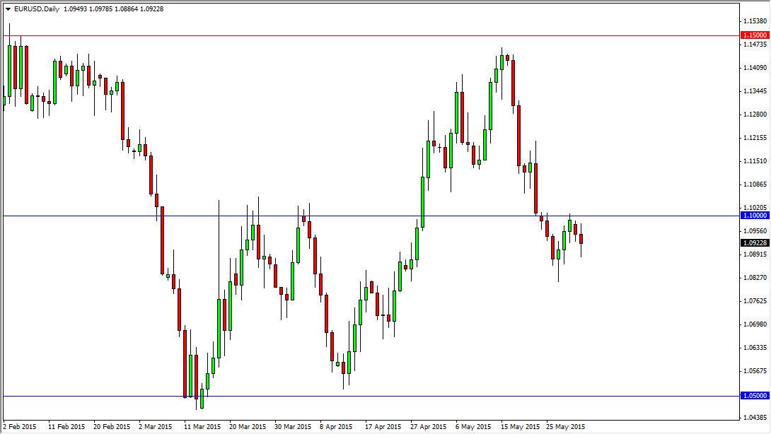 The market will be volatile regardless. Until we break above the 1.10 level, or below the 1.08 level, I don’t really have any interest in being involved in this market, as I think it will be very difficult to trade. I believe that it will only be a matter of time before major problems happen, which of course will send this market in one direction or the other. In the meantime, in these 200 pips, I think there is nothing but noise. The Monday session certainly lends credence to that, but when I do notice is that the weekly chart formed a perfect hammer. Because of this, I would anticipate we may actually break higher, something that might be a little counterintuitive.