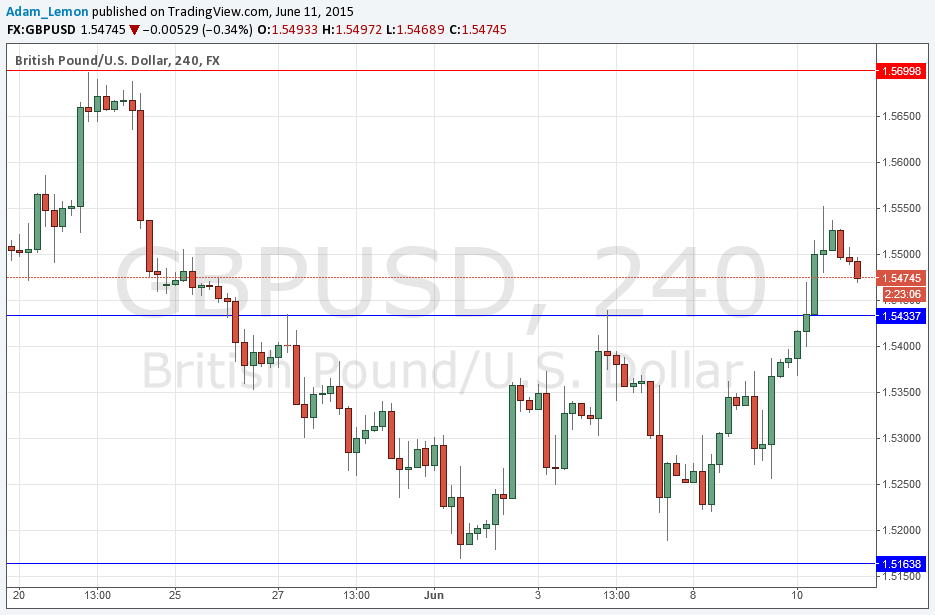 Yesterday the price went up past the crucially important psychological level of 1.5500, but was not able to remain up there and is now trading below that level. However this move did break two resistance levels and the picture does look bullish. The closest key support or resistance is probable flipped support below at the previous double top of 1.5434. It looks like we are now falling to that area where we will probably get a reversal. The support could start to kick in as high as 1.5450 so be prepared.