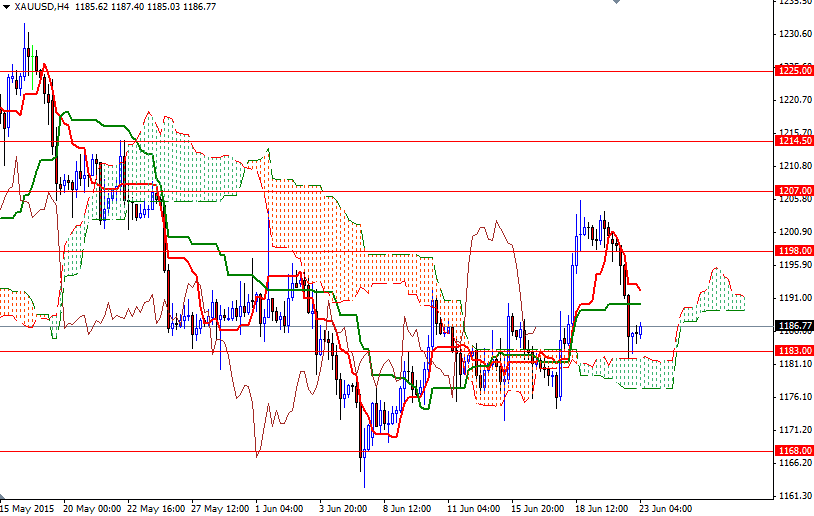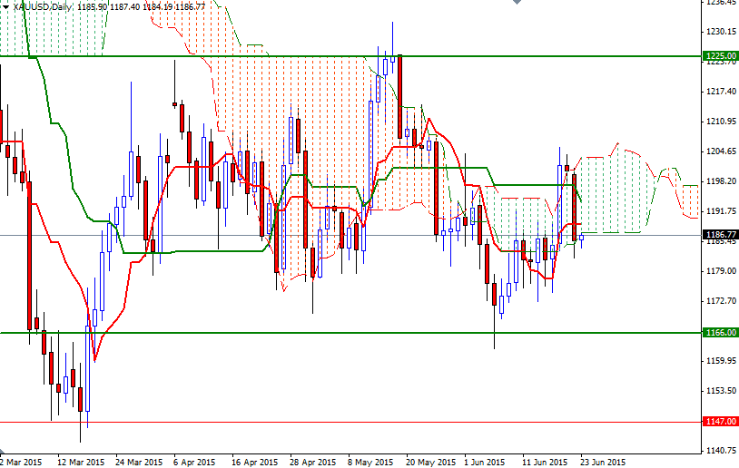 The XAU/USD pair, which accelerated its descent after the 1198 support level was broken, pulled back to the Ichimoku cloud on the 4-hour time frame. This area has produced a bit of a bounce so far and therefore I will keep an eye on there. To the upside, the initial resistance level stands at 1192/0 where the Tenkan-Sen (nine-period moving average, red line) and Kijun-Sen (twenty six-day moving average, green line) lines converge. The market will need to pass through this region in order to retest the 1202 - 1198 resistance.
