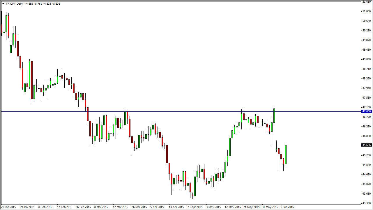 With that being said, you have to keep in mind that the swap at the end of the day is very positive if you own the Turkish lira, as the Japanese yen pays almost nothing. Ultimately, this market should go higher, but you will have to be able to simply deal with the volatility and hang onto the trade. It’s almost a situation where you have to “hold your nose”, and deal with the smell. After all, a lot of what’s driving this market will be politics, which of course is always back and forth anyway. Regardless, I expect to see 47 soon.