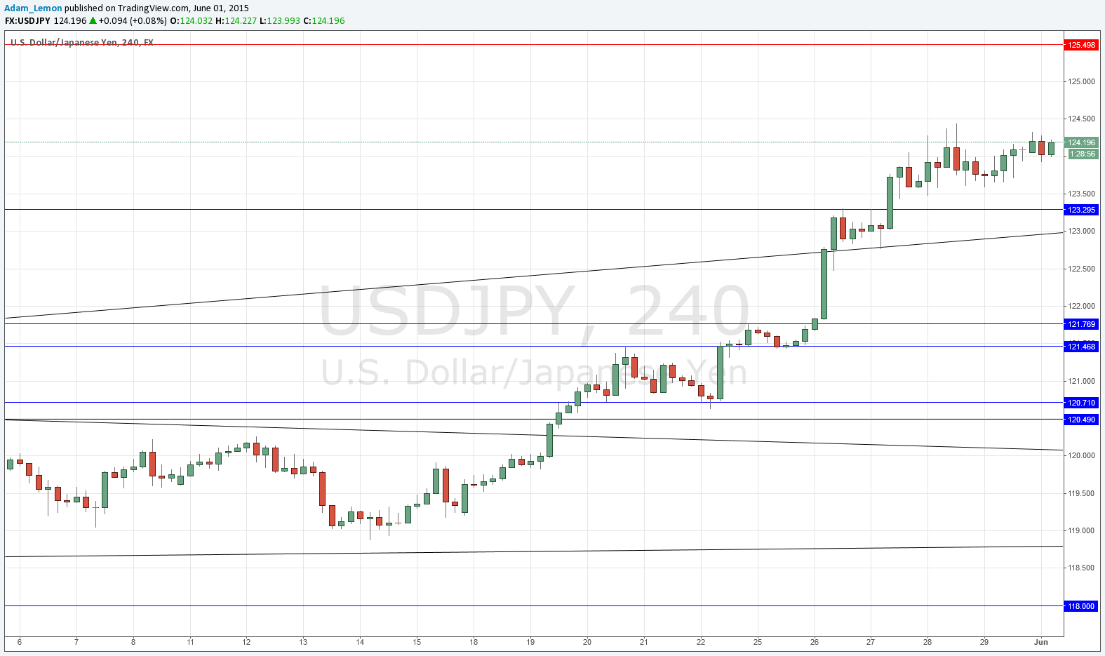 There will probably be resistance at the psychologically key round number of 125.00 but there is a key level beyond that which is the multi-year high at 125.50.