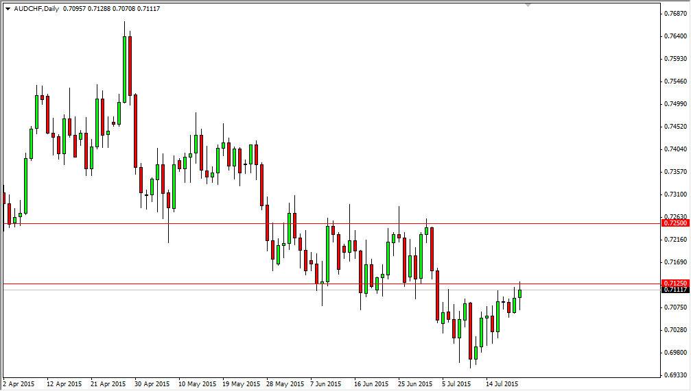 I think that the 0.7150 level or so should continue to offer resistance, and as a result I am looking for some type of resistive candle in order to start selling. After all, I do not like the Australian dollar in general, although I can’t necessarily suggest that the Swiss franc is a currency I want to own in general. In this particular case though, it makes sense.