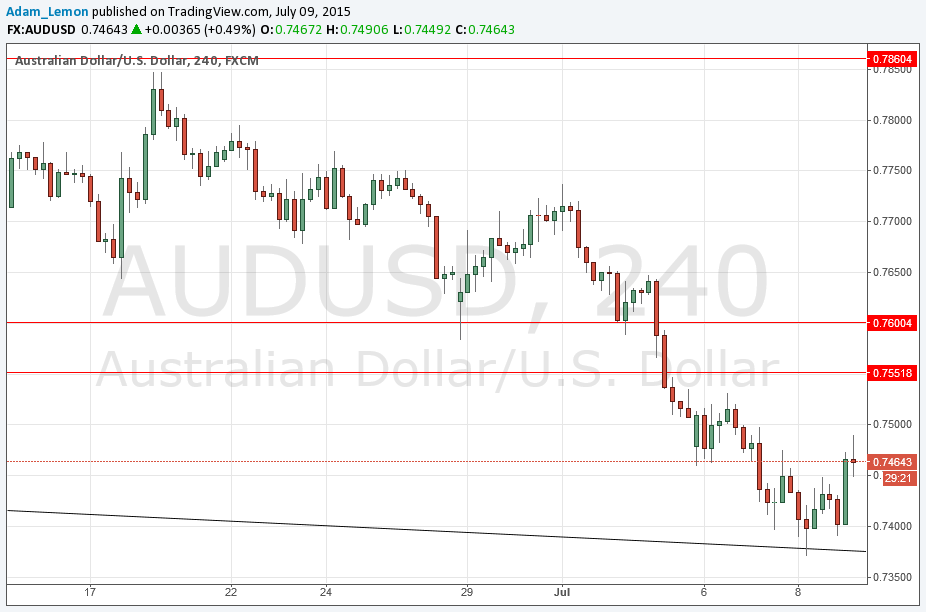 In the end, the pair did bounce up quite nicely from that trend line I had previously highlighted to threaten 0.7500.