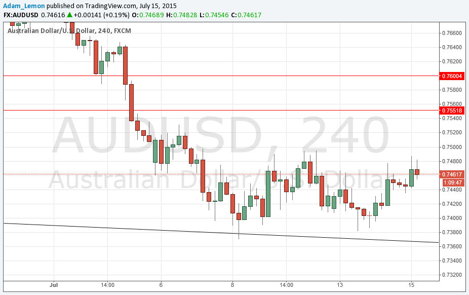 - Go long following some bullish price action on the H1 time frame immediately upon the next touch of the trend line currently sitting at around 0.7365.