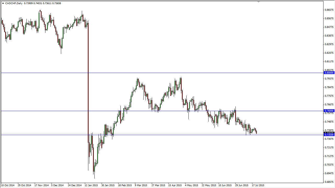 Once we get a significant breakdown in the oil markets that will more than likely be enough to break down below the 0.7350 handle. Quite frankly, I feel that it’s only a matter of time before this happens, so I don’t really have a scenario for buying this market as it is far too negative and strong to the downside in order to try to fight that move lower.