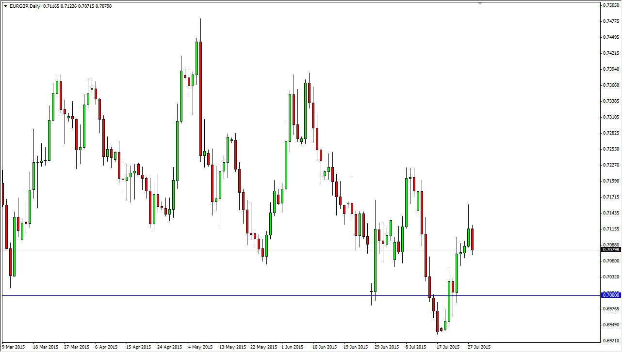 The EUR/GBP pair fell during the course of the day on Tuesday, breaking the bottom of the shooting star towards the end of the day that had formed on Monday. Because of this, I believe that this market is probably going to grind its way back down to the 0.70 handle. While the Euro looks fairly positive in general, the truth of the matter is that neither one of these currencies are exactly struggling in the short-term, so it really comes down to a matter of “relative strength” when it comes to this pair.