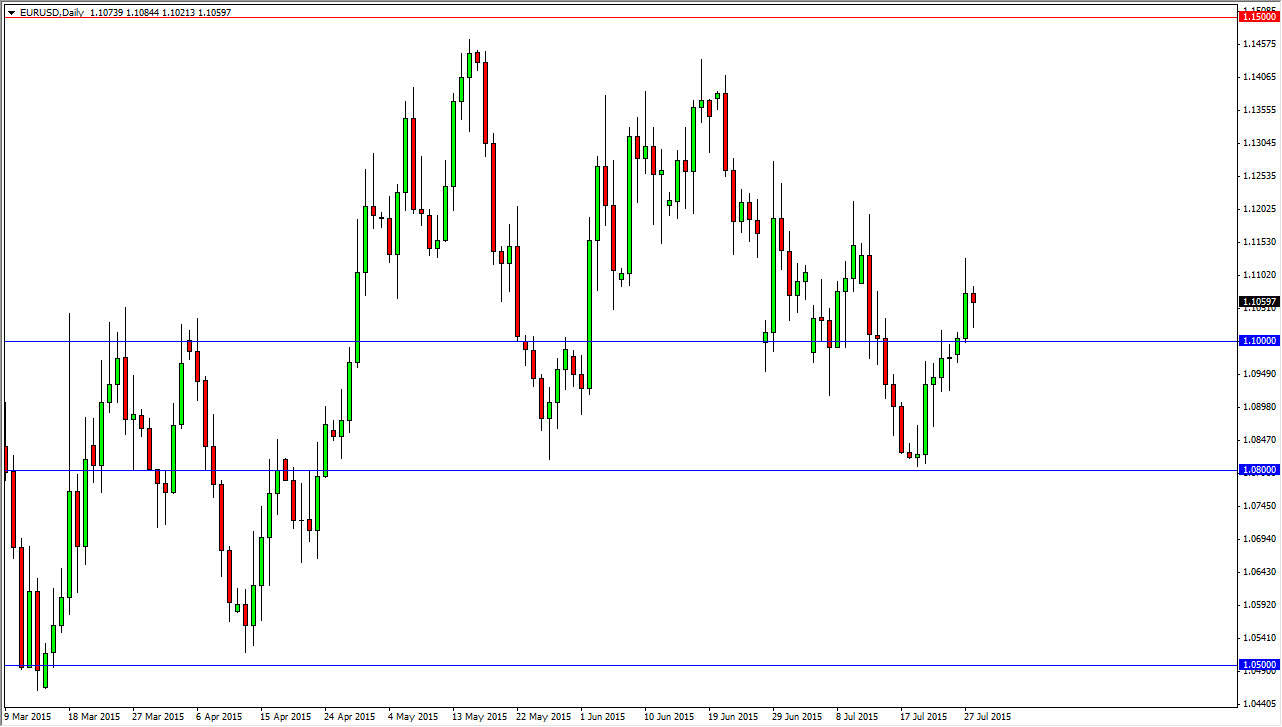 I believe that short-term trading is about the only thing you can do in this market, and as a result I would actually be using the daily charts as a guidepost for trades off of the one hour chart. I believe that pullbacks towards the 1.10 level offer buying opportunities if we can find support. On the other hand, if we break down below that level I would be a seller as I think the market would then head back to the 1.08 handle, an area that has been rather supportive. The matter what, I cannot imagine being married to a position in this market, as it is not only volatile due to the situation in Greece, but quite frankly this time of year has very little in the way of conviction most of the time, and this year of course doesn’t seem to be any different than most others. With this, I remain somewhat neutral in this pair but recognize that we have some range bound trading to do from time to time.