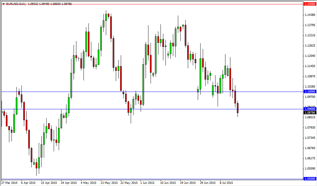 Looking at the EUR/USD pair, one of the first things I notice is that we did in fact break down below the 1.09 level. Because of this, I feel that we are probably going to continue to go lower but I do not expect an easy move below here. After all, there is a hammer to contend with from the beginning of May which of course will have an effect as far as support is concerned, and of course there are a lot of headlines out there that could move this market. With that being said though, I cannot help but notice that the Euro is struggling in general. With fact, I think that the Euro will continue to sell off against multiple currencies, not just the US dollar. However, if the keep in mind that the EUR/USD pair is essentially the “measuring stick” of Euro strength, and as a result as this pair goes typically most EUR/XXX pairs go.