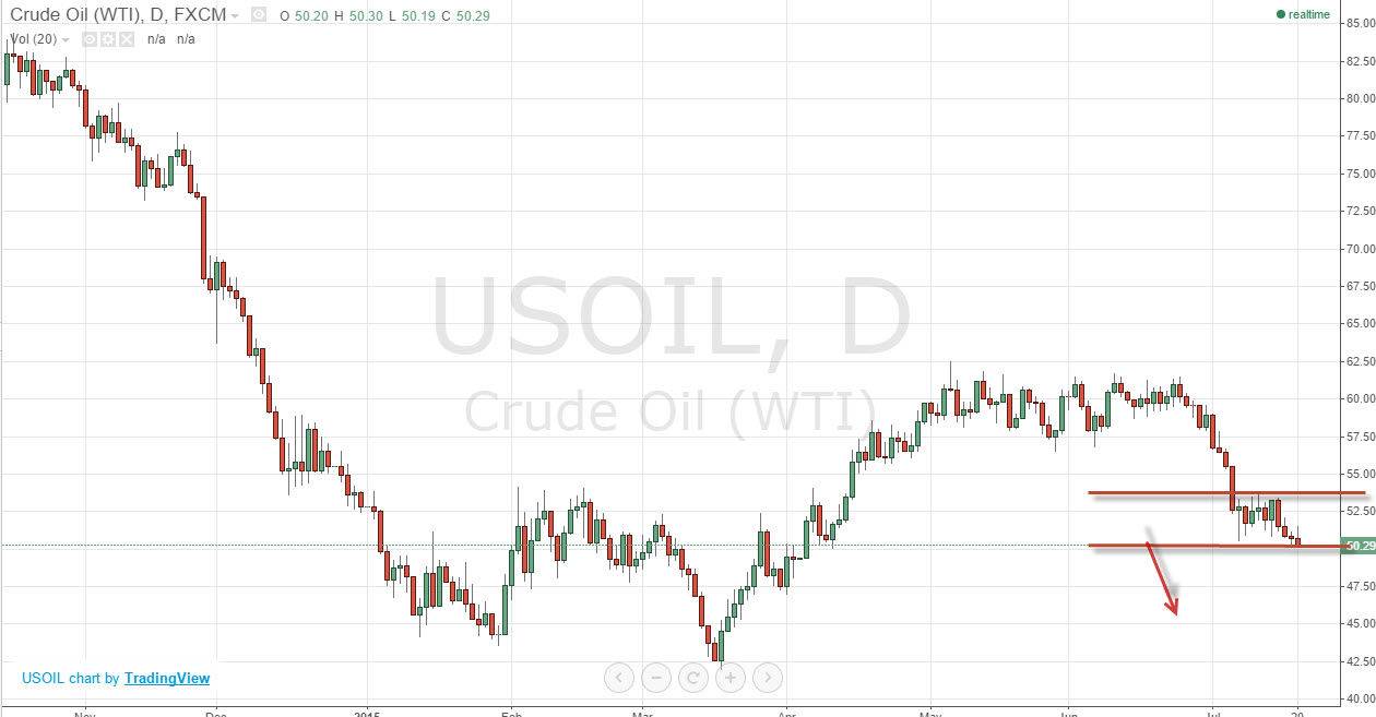 If we can break down below there, the market should then head towards the $45 level, which is the next large, round, psychologically significant number. I think there is support there as well, so really this point in time I think that the market will move in $5 increments, as the crude oil markets tend to move in a very technical increments.