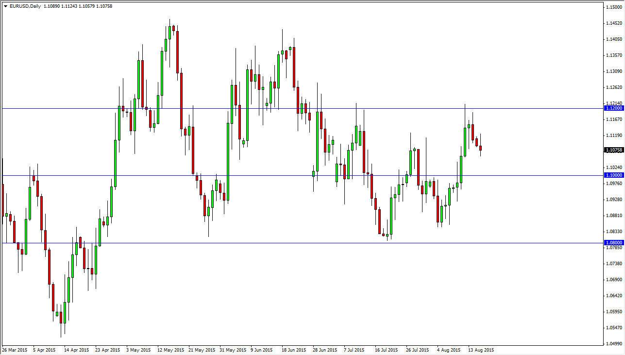 Looking at the EUR/USD pair, you can see that we went back and forth during the course of the day on Monday, initially trying to rally but struggled at the 1.1125 level, and then fell enough to form a shooting star. With this, the market looks as if it is going to reach down towards the 1.10 level given enough time. Ultimately, I think that this pair will continue to be very volatile so it’s difficult to trade this market in general, as you will have to focus on short-term charts.