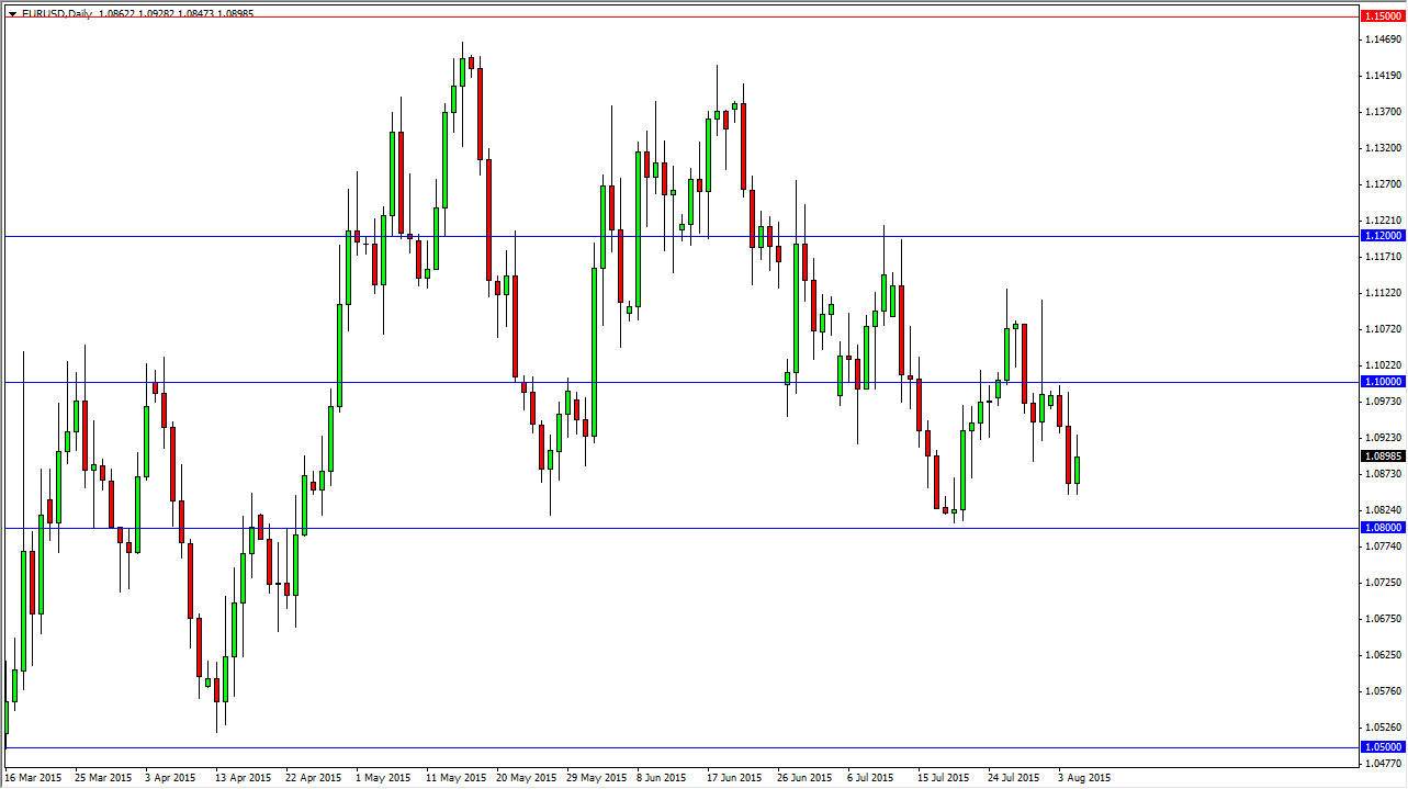 The EUR/USD pair continued to grind away during the course of the session on Wednesday, as we did get a little bit of bullishness, but at the end of the day I don’t expect much out of this market. After all, Friday is the Nonfarm Payroll Numbers announcement, and with that I anticipate that the market will continue to be very choppy. Because of this, I think you’re going to have to focus on short-term charts, but at the end of the day it appears that we will probably try to rally towards the 1.0950 region. In other words, I’m talking very little in the way of motion, and more often than not going to be very small moves.