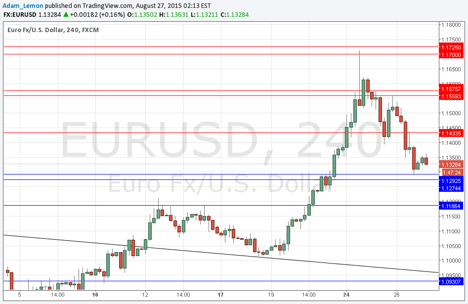 Above I see resistance from around 1.1400 to 1.1433, so that round number could be a good place to take at least partial profit on any long trade.