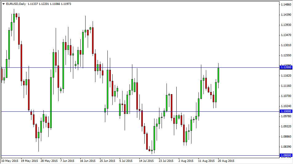 Looking at the EUR/USD pair, we most certainly had a strong session on Thursday. We slammed into the 1.12 level, which of course was the top of the larger consolidation area that we have been working with for some time. I think that this candle will be very important, as it will show which direction we go from. If we can break above the top of the range for the session on Thursday, we would more than likely see this market head towards the 1.14 handle. On the other hand though, I think that a resistive candle in this general vicinity would be an excellent selling opportunity as it would just simply validate the massive resistance.