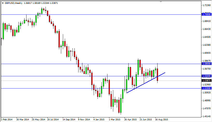 At the very end of the last full week of August, the market started to try to rally. We had just broken down below that uptrend line, so I think this means that the market is going to try to see if we find resistance at the 1.55 level. If we do, I think that’s when the selling pressure really starts to pick up. It wouldn’t surprise me at all if we bounce off of the 1.52 level though, and back towards the 1.55 level. That would essentially turned the last couple of months into a major consolidation area.
