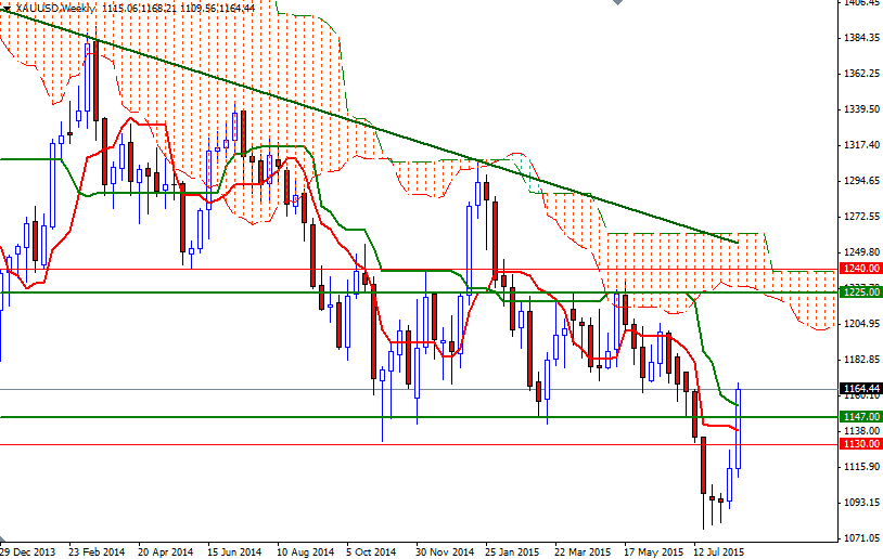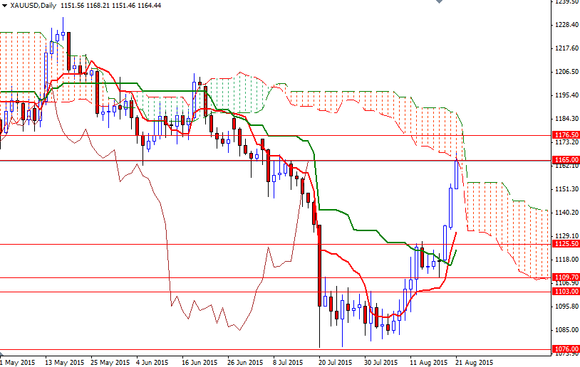 The bulls have been dominating the market since prices bottomed out around the 1076 level. Not surprisingly, the XAU/USD pair accelerated its ascent after the 1125.50 resistance was broken and now we are testing the Ichimoku cloud on the daily chart. Although the short-term outlook favors the bulls, the area between the 1165 and 1176.50 level is likely to offer some resistance.
