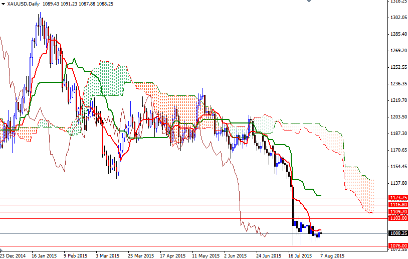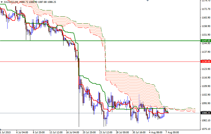 Gold prices advanced $4.57 an ounce yesterday as a slump in global equities and the retreating U.S. dollar provided some support to the precious metal. The XAU/USD pair turned higher and touched $1093.98 after the Labor Department reported initial jobless claims rose by 3K to 270K. The tightening trading range that dominated the price action for the past two weeks shows the majority of traders are cautious and hesitant to make aggressive bets ahead of highly anticipated U.S. jobs data that may help determine whether the Federal Reserve could raise interest rates in September.