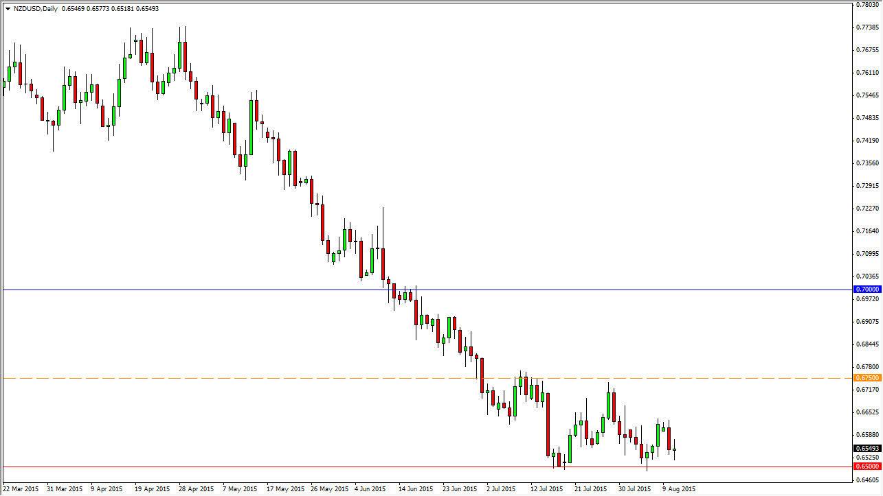 The NZD/USD pair went back and forth during the session on Tuesday, but couldn't necessarily make any real move in one direction or the other. This is a fairly quiet session, but the one thing that it does tell me is that the market is very comfortable hanging about the 0.65 handle. When you are in a strong downtrend like we have been in for some time, that’s not good news for the front currency. I believe that the New Zealand dollar is getting ready to break down below the 0.65 handle, and a move below that level is reason enough to start selling yet again.