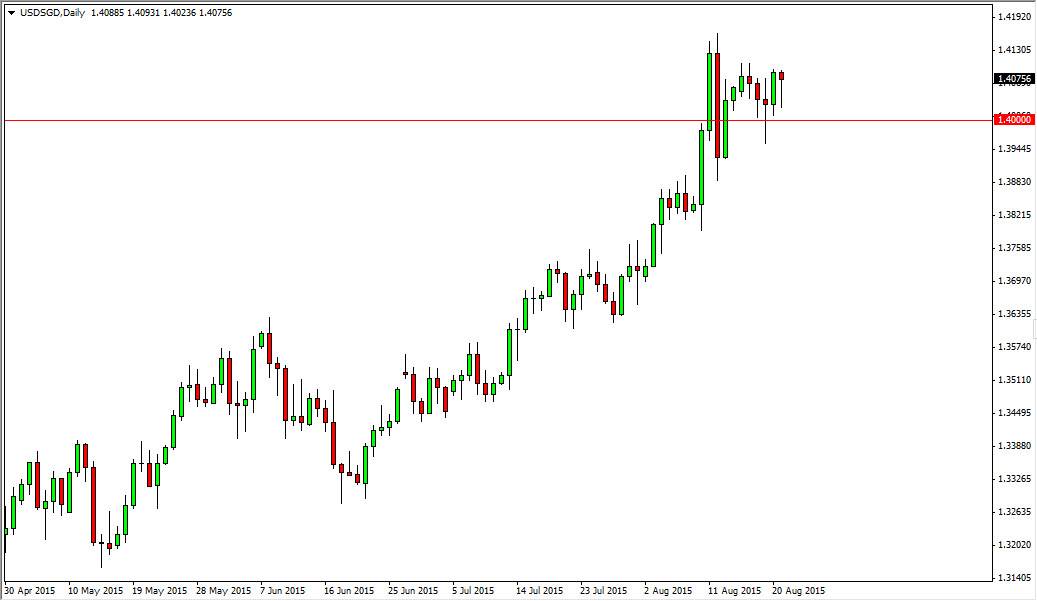 The USD/SGD pair fell initially during the day on Friday, but as you can see the 1.40 level offered enough support to turn the market back around and form a hammer. This of course is a very positive sign, but right now I think overall we are simply trying to consolidate. That makes sense, because the 1.40 level is a large, round, psychologically significant number, and was significant resistance in the past. Now that we broke above there, the market is simply trying to build up the momentum to continue going higher. Also, you have to keep in mind that it is difficult to pick up any serious momentum at this moment in time, simply because we are at the very end of the summertime vacation. In other words, a lot of liquidity simply is not going to be in the marketplace.