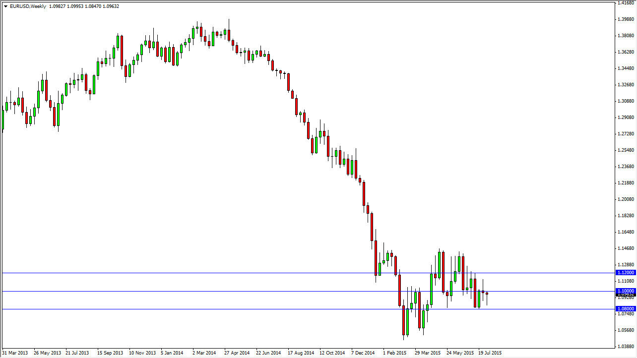 The EUR/USD pair fell initially during the course of the week, but regained of most of the losses by the time we closed up shop on Friday. Ended up forming a hammer, which of course is a bullish sign. However, that was preceded by a shooting star, which means consolidation. With that in mind, I am actually staying away from this pair this week, as I think there will be easier ways to make money in the markets. Quite frankly, the only thing I think you can count on a short-term volatility.