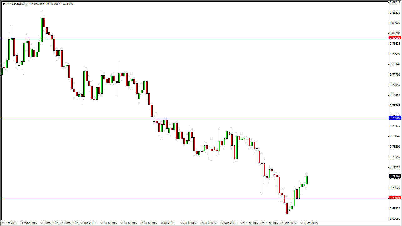 The AUD/USD pair broke higher during the course of the session on Monday, and even managed to break above the top of the shooting star that had formed on Friday. This of course is a very bullish sign, and as a result I think this market may try to go a little bit higher from here. However, I see quite a bit of resistance near the 0.72 level, and as a result I think that this will lead to a decent selling opportunity. Obviously, we have been in a very strong downtrend for some time now, and as a result I feel that it is far too dangerous to go against the massive bearish pressure that we see in this market.