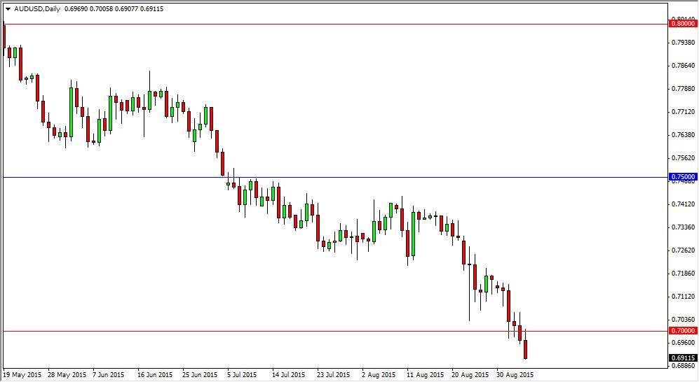 Asian markets and economies in general look very soft in general, and as a result there will be less demand for gold and copper, as well as other minerals that come out of the Australian continent. With that, it makes sense if this pair continues to drift lower as the relative safety of the US dollar of course will be attractive. I feel that this market will reach towards the 0.68 handle given enough time, and then eventually down to the 0.65 level. With this, I sell on a break down below the bottom of the candle, and of course any rally that show signs of weakness as the Australian dollar has been beat up so severely. This is a strong trend, and a break down below the 0.70 level is of course a very negative sign.