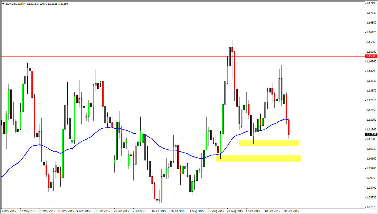 Looking at this chart, the first thing I think of is the fact that longer-term traders will struggle to hang onto positions with any real length. With that, the market should continue to go back and forth quite a bit, and of course the recent volatility based upon the Federal Reserve not raising rates would be the biggest contributor to this now. With that, and the fact that the PMI numbers come out above Germany and France today, I think there could be a little bit of volatility added due to that as well. After all, the European indices all fell, and the DAX suddenly looks very vulnerable. With that, it could be a sign that more money is going to flow into the United States and out of Europe, and that of course will drive this pair lower.