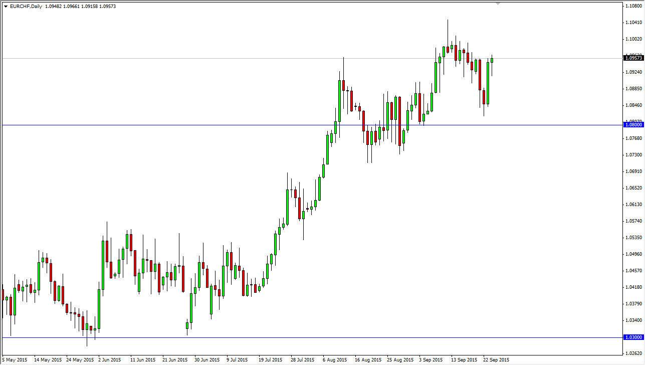 The EUR/CHF pair initially pulled back during the course of the session on Thursday, but found enough support near the 1.09 level to turn things around completely and form a hammer. With that being the case, it appears that the market will more than likely try to go higher, and if we can break above the 1.10 level, this market could very well be free to finally make the longer-term move higher than that I have anticipated seeing for some time now. With that being the case, it’s very likely that it will take a significant amount of pressure, in order to break through this barrier finally.
