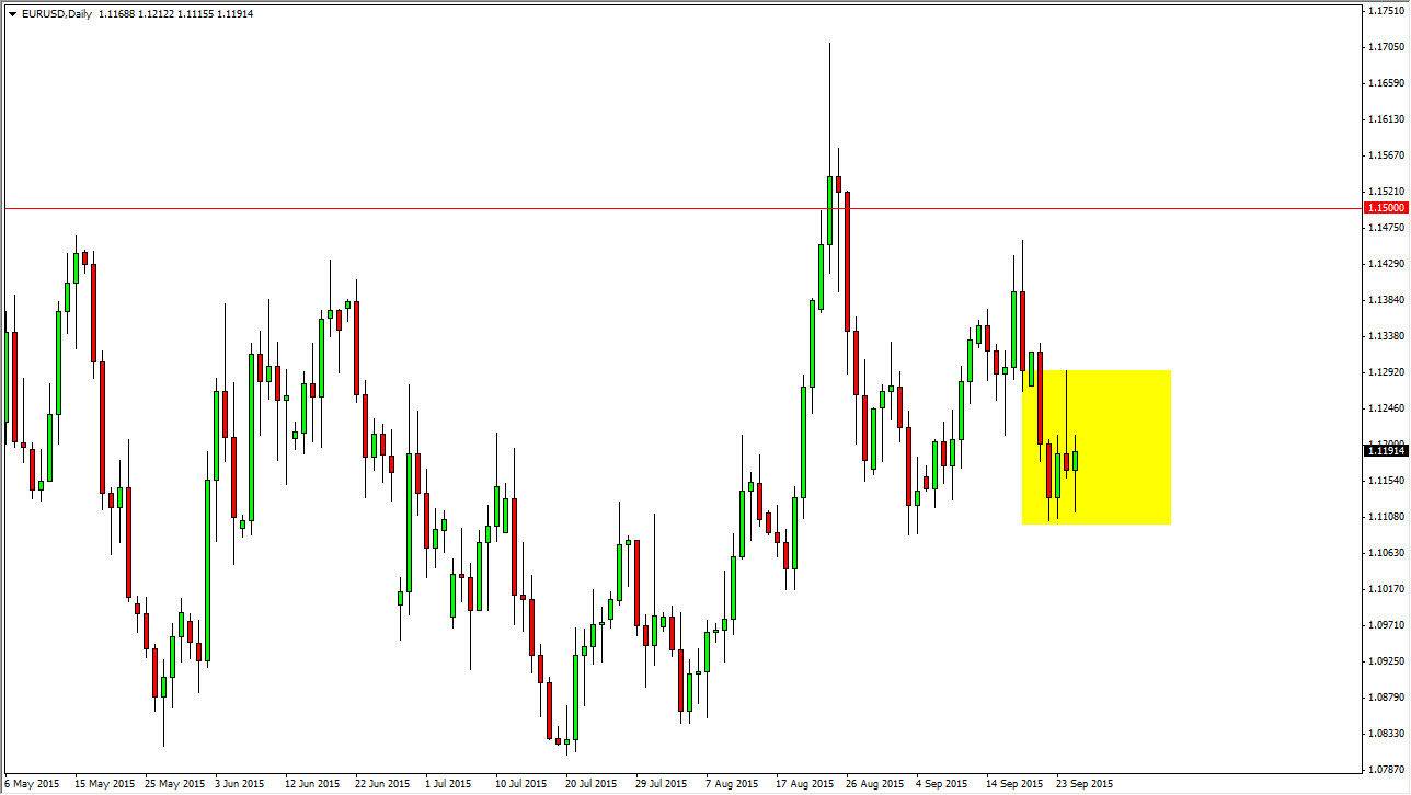 This market is the epitome of a choppy market. It has been for some time as high-frequency trading has become the norm. With that being said, you have to keep in mind that there are a lot of different factors moving at one time in this market as well. After all, you have the Federal Reserve failing to raise interest rates and that of course shocked quite a few traders out there. But at the same time, you also have a lot of concerns in the European Union, and more importantly the Federal Reserve suggesting that perhaps it was the rest of the world that was causing the issues, and not only the United States as far as they were concerned. The markets listened, and now we are starting to see a bit of a run back to the US dollar.