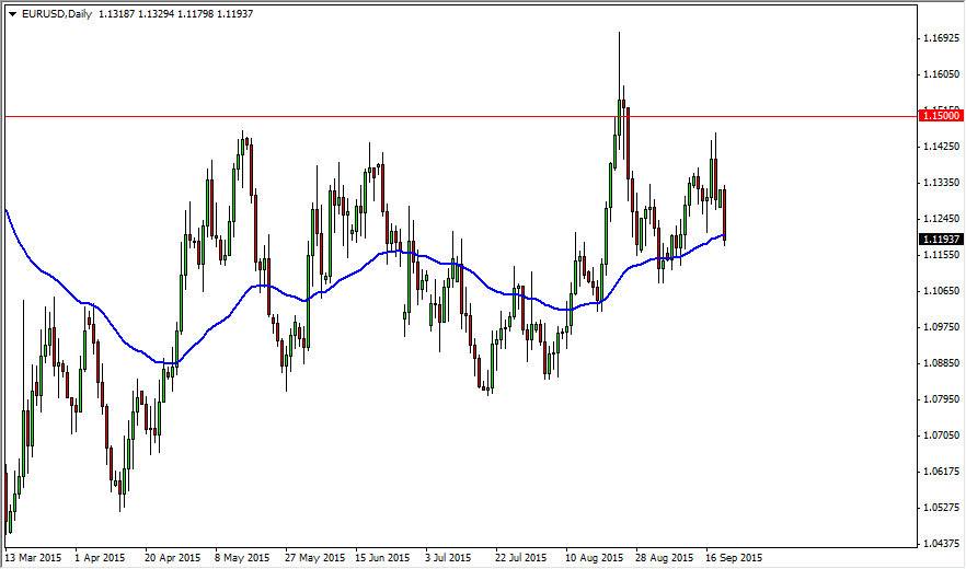 The EUR/USD pair fell significantly during the session on Monday, as the US dollar continues to be favored by the currency market at the moment. While the Federal Reserve did not raise interest rates last week, the reality is that they suggested global economies and markets will continue to be very volatile, keeping them from feeling comfortable enough to raise interest rates.