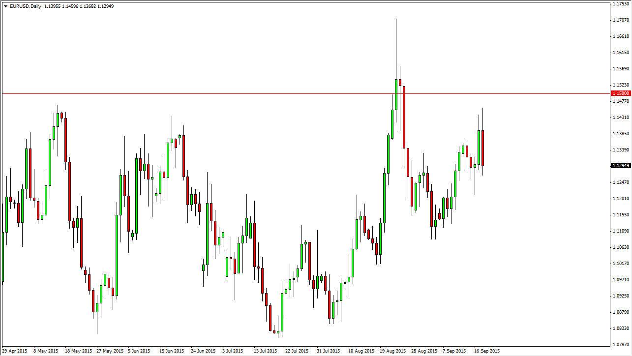 Well, one of the things that the Federal Reserve promised to do was to become more transparent. It has done that in a sense, as it has shown that it doesn’t know what to do about the economic situation around the world, as it relates to the United States. I cannot help but think that some of the “doomsayers” such as Peter Schiff haven’t been correct all along when it comes to central bankers. After all, they couldn’t even raise the interest rates 1/8 of a percent in order to get things moving in the correct direction. With that, they stated that they were worried about global conditions more than anything else, and basically “passed the buck” down the road as we now could very well see interest-rate hikes in 2016 instead. At this point in time, I think the market will favor the Euro, but there is just far too much in the way of confusion to place a trade for any real length of time. Over the next couple of sessions, I anticipate that we will bounce around between the 1.13 level and the 1.14 level.