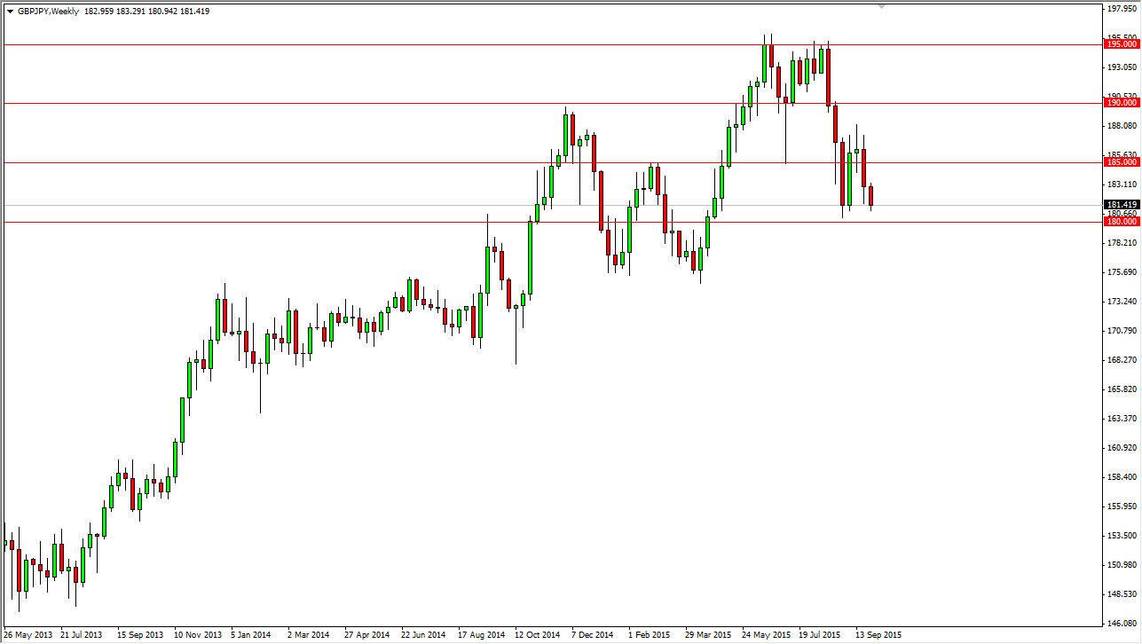 I believe that the 180 level is essentially a bit of a “floor” in this marketplace and as a result it’s only a matter of time before we find buyers in this region. I think that this market is going to represent a decent buying opportunity, but we need to have a stable global market in order to do so. Stock markets need to find a little bit of support, as they have been selling off quite drastically over the last several weeks. However, if we get some type of stability and confidence building situation, this pair should continue to go higher. Don’t forget, this pair tends to move rather rapidly, so if you catch it as it bounces, you could find quite a bit in the way of profits.
