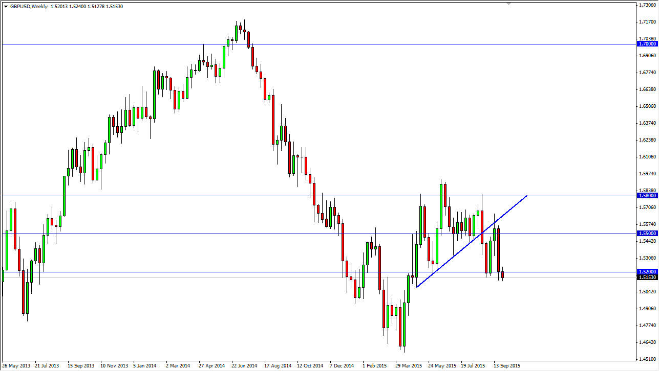 The GBP/USD pair has been extraordinarily volatile recently, as we had broken below the uptrend line that had the British pound strong over the course of the summer. By breaking down below there, it is essentially a trend change from the rally that we had seen for several months. However, you have to look at the charts and recognize that we have been in a downtrend for much longer than that, so quite frankly a break down from here really isn’t that big of a surprise if you look at it from a longer-term perspective.