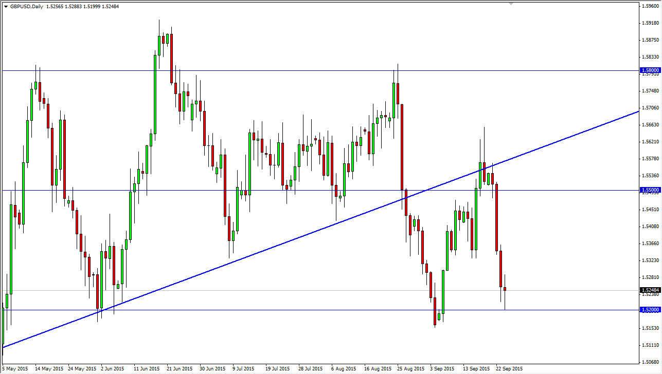 If we can make a fresh new low, and other words break down below the 1.5150 level, I think this market could really fall apart and head towards the psychologically significant 1.50 handle. Any rally at this point time is going to have to deal with a significant amount of bearish pressure though, so unless you are short-term trader it’s going to be almost impossible to buy this pair. With that being said, I think it’s just simply going to be much easier to wait for the breakdown or perhaps the rally and signs of exhaustion in order to start selling. With this, I personally will not be buying this pair but do recognize that short-term traders may be able to as the bounce seems to be trying to telegraph itself. I will be patient, but money will more than likely be offered on both sides of the aisle this time.
