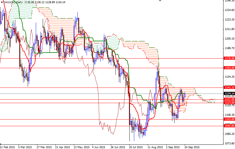 Gold turned higher on Wednesday as declines in equities sparked by weak Chinese factory data made gold more attractive as an alternative asset. The XAU/USD pair continued to advance during today's Asian session and traded as high as $1136.12 an ounce. Technically speaking, the Ichimoku cloud indicates an area of resistance (or support depending on its location) so basically the trend is up when prices are above the cloud, down when prices are below the cloud and flat when they are in the cloud itself.