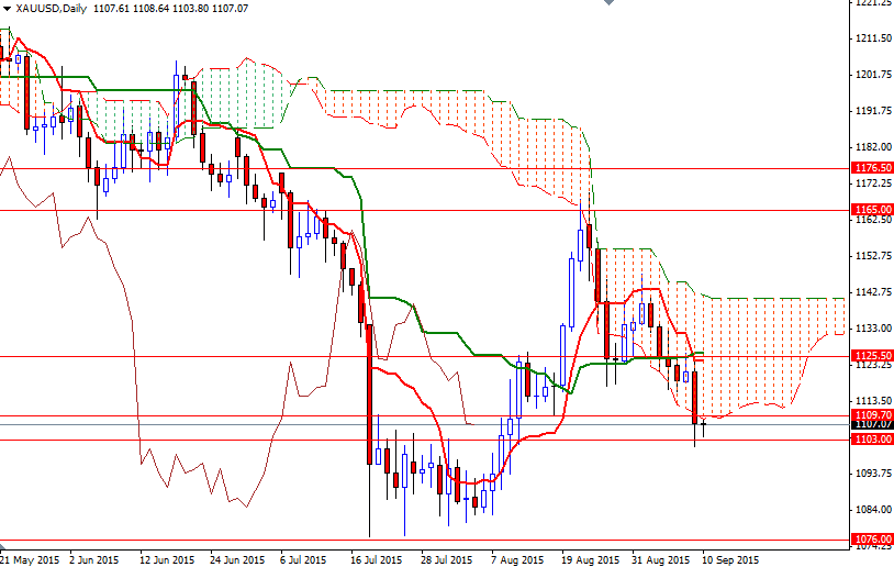 However, it is quite possible that XAU/USD will continue its bearish tendencies if the 1103 support gives way. In that case, the 1195 and 1190 levels will be the next possible targets. A daily close beneath the 1090 level could send prices back to 1083 and then 1076.