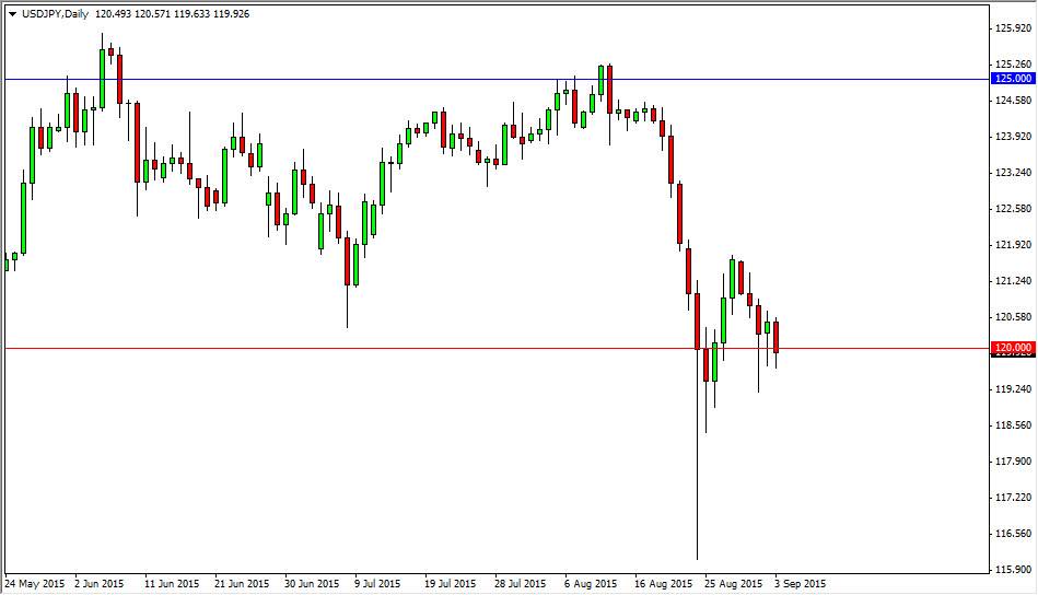 The USD/JPY pair fell during the course of the day on Thursday, cracking the 120 handle. That being the case, the market looks as if it is testing serious support, and the fact that it is the Nonfarm Payroll Numbers announcement today, there is a good chance that we will have quite a bit of volatility. With that being the case, the market looks as if it is going to continue to go back and forth, and that of course will make it difficult to hang onto this trade. However, I recognize that the pair tends to be very sensitive to the jobs number out of the United States, and as a result I think today will be a very big day.
